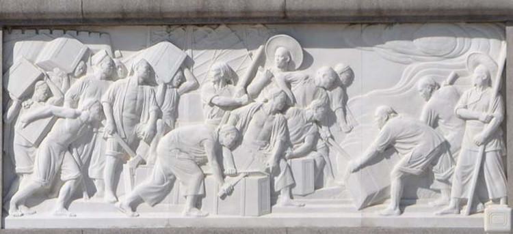 对于艺术史研究而言,无论是纪念碑还是具有纪念碑性的建筑,最重要地是要把握“纪念碑的地位和意义体现于其具体形象中的特征如材质、形体、装饰和铭文”。我们研究现代纪念碑的建筑设计,要注意它与古代纪念碑不同的重大变化,如纪念碑的位置规划、形体高度、碑体主立面方向、浮雕内容、碑身形式、材质选用等。形象的分析与图像的阐释,应成为艺术史研究区别于一般历史研究的文献分析方法的重要特征。也就是说,应该将纪念碑与雕刻作为象征的图像进行研究,在这里,作品考察与图像分析的重要性是不言而喻的。挪威建筑理论家C•诺伯格•舒尔茨在《居住的概念》一书中认为,“建筑语言”包含形态学的、拓朴学的、类型学的三方面要素,并把这本书称之为“走向象征的建筑学”。清华大学汪坦教授认为,“象征”原文为Figurative,也可译为图形的,三个要素都是解释形象的属性。在建筑史与雕塑史的研究中尽可能采用作品图片与历史照片,对图像的文化内涵和作品的形式风格进行分析,正是基于这样一种艺术史方法论的认识。