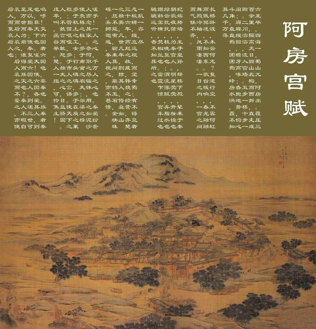 (六国的)宫女妃嫔、诸侯王族的女儿孙女,辞别了故国的楼阁宫殿,乘坐辇车来到秦国。(她们)日夜奏琴歌唱,成为秦皇的宫人。(清晨)只见(光如)明星闪亮,(原来是她们)打开了梳妆的明镜;又见乌云纷纷扰扰,(原来是她们)一早在梳理发鬓;渭水涨起一层脂膏,(是她们)泼下的脂粉水呀;轻烟缭绕,香雾弥漫,是她们焚烧的椒兰异香。忽然雷霆般的响声震天,(原来是)宫车从这里驰过;辘辘的车轮声渐听渐远,不知它驶向何方。(宫女们)极力显示自己的妩媚娇妍,每一处肌肤,每一种姿态,都娇媚极了。(她们)久久地伫立着,眺望着,希望皇帝能宠幸光临;(可怜)有的人三十六年始终未曾见过皇帝的身影。燕国赵国、韩国魏国、齐国楚国收藏的金玉珍宝等物,都是多少年、多少代,从人民那里掠夺来的,堆积如山。一旦国家破亡,不能再占有,都运送到阿房宫中。把宝鼎(看作)铁锅,把美玉(看作)石头,把黄金(看作)土块,把珍珠(看作)砂砾,扔得到处都是,秦国的人看着,也不觉得可惜。