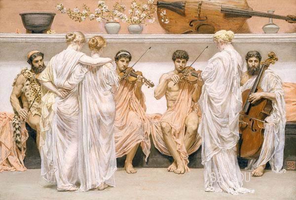 我们说起希腊,一定不会忘记那些耳熟能详的希腊神话故事。太阳神阿波罗天神宙斯等等。神,在希腊的审美文化中是不可或缺的一部分。丹纳的《艺术哲学》说,“希腊人竭力以美丽的人体为模范,结果竟奉为偶像,在地上颂之为英雄,在天上敬之如神明。”在他看来,神人是同形同性的。神人共居,彼此交融。人与神居于同一个世界,神人可以通婚,后代即为英雄。