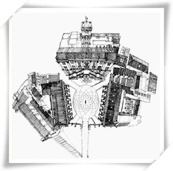 总之,四面和三面围合是最传统的、也是最多见的广场布局形式。值得指出的是,二面围合广场可以配合现代城市里的建筑设置。同时,还可借助于周边环境乃至远处的景观要素,有效地扩大广场在城市空间中的延伸感和枢纽作用。