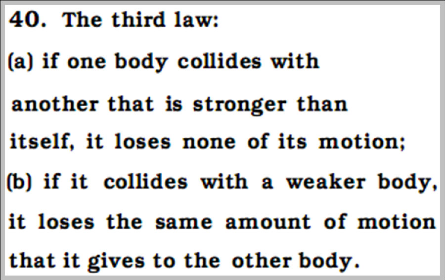 提示一下:笛卡尔所说的定律(law)实际上是定理的意思,因为他的自然哲学的唯一初始前提就是“我思故我在”,由此“证明了”上帝的存在,再接下来证明了他的所有“定律”。作为科学家,他远不如牛顿。