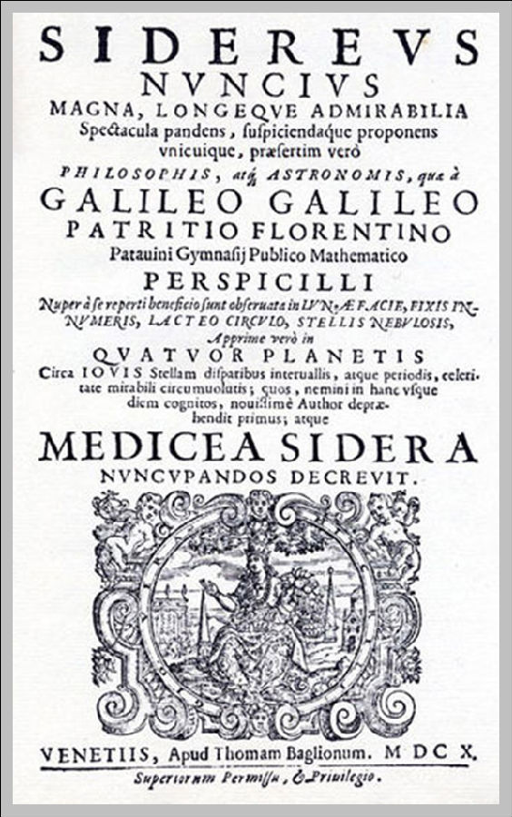 在1610年,伽利略出版了他的Sidereus Nuncius,描述说,他已与新的望远镜令人惊讶的看法。这些和其他的发现暴露的严重困难,因为科学的开头已经存在的宇宙的科学认识,并提出了新的思路,如哥白尼的日心说(发表于德revolutionibus orbium coelestium于1543年)的兴趣。