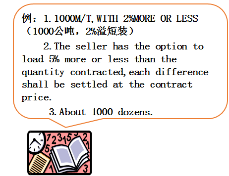 ★数量条款规定了,成交商品的具体数量和计量单位。