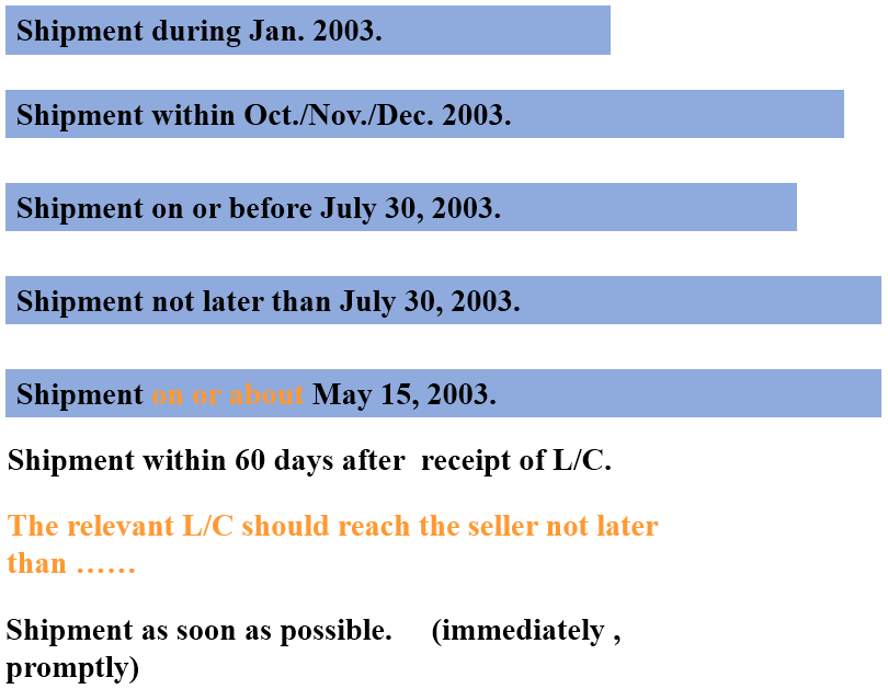 1、明确规定具体的时间,规定明确的装运月份或季度。