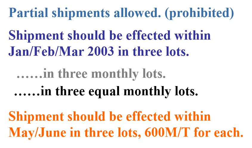 1.除非信用证另有规定,允许分批装运/或分批支款。