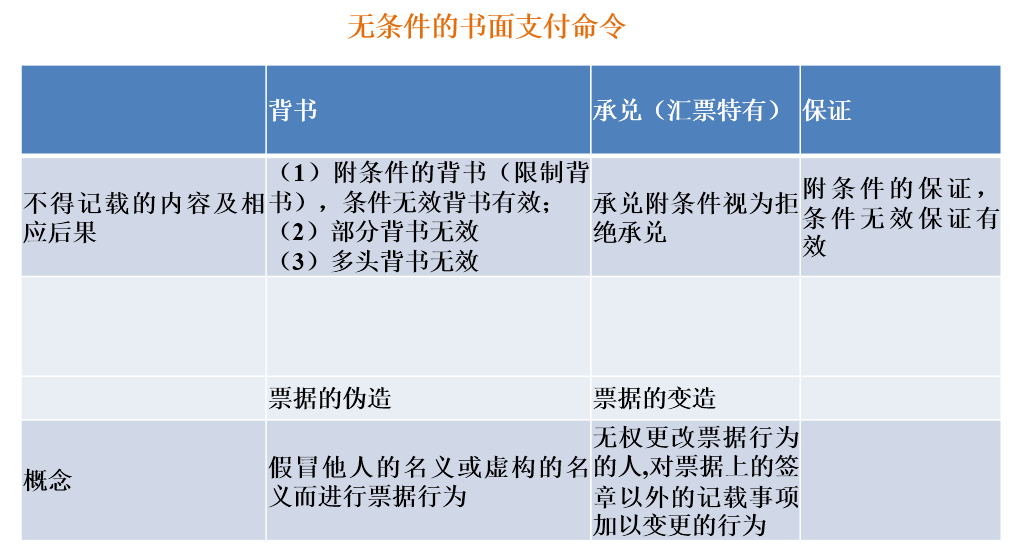 3.承兑:由于本票的出票人与付款人是同一人,远期本票由他人签发,就等于本人已经承诺在本票到期日付款,所以远期本票无须承兑。