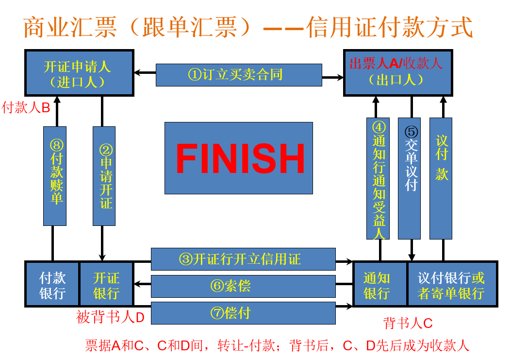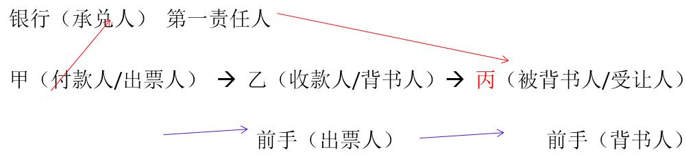 A出票人,B付款人→C背书人→D受款人