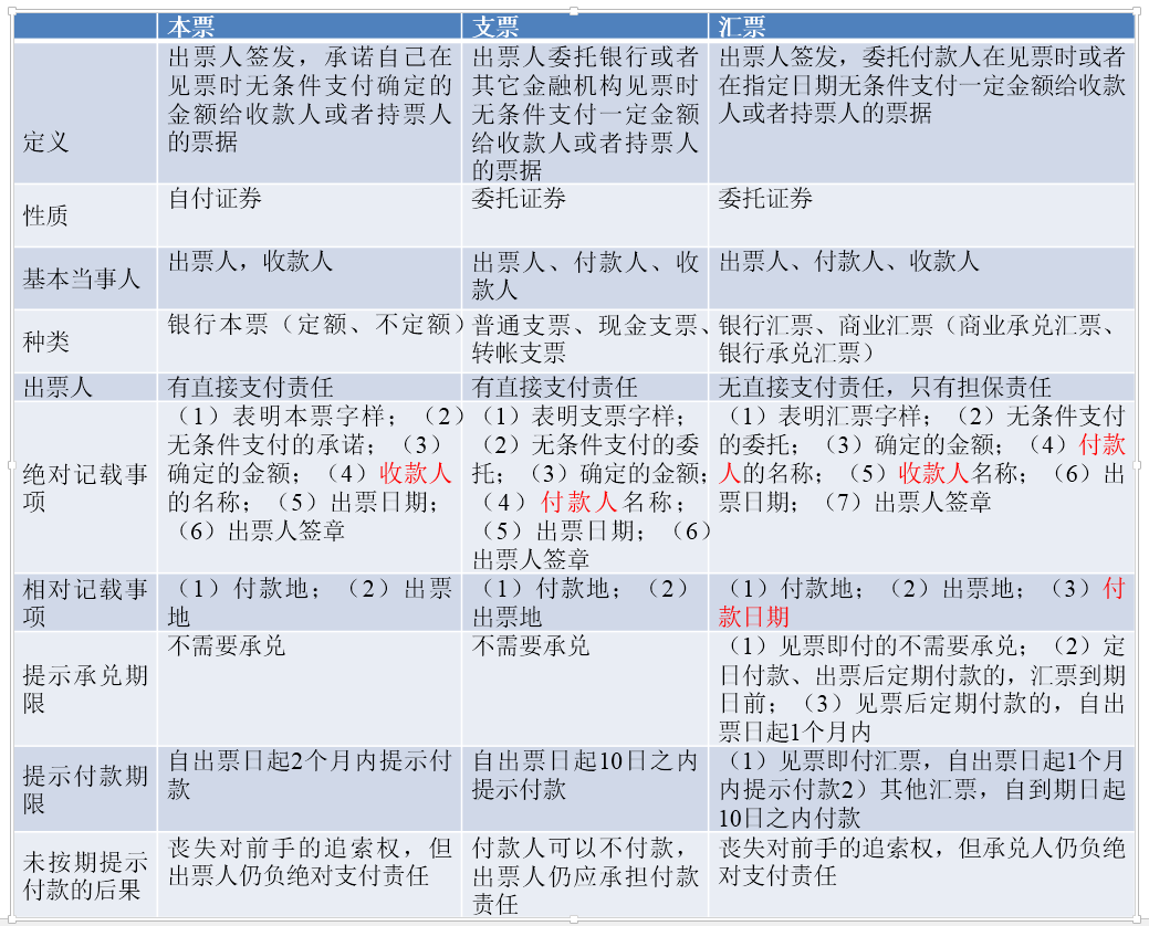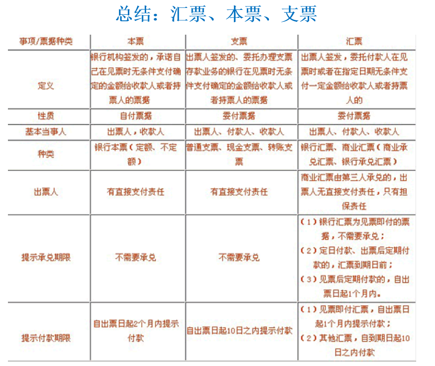 三种票据的异同