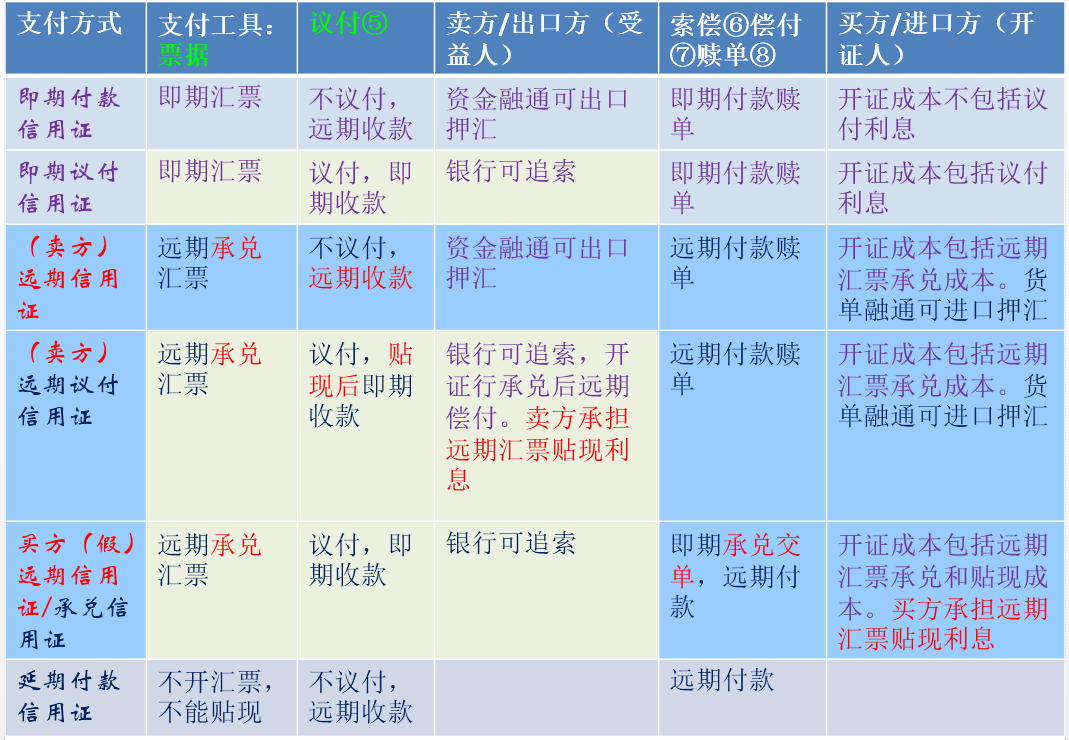 (1)议付行可以从开证行获得偿付的时间是不同的。第⑥⑦步