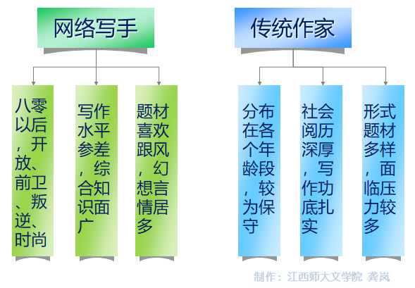上网文学:传统作家将他们的纸面文学作品提供给文学网站在网上传播。