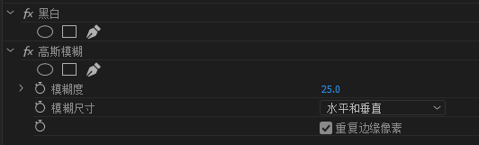 1.使用导出帧或者帧定格,选择需要静止显示的一帧,然后调整时间长度,按Alt键复制一份出来,给位于下层的图片依次添加黑白和高斯模糊。