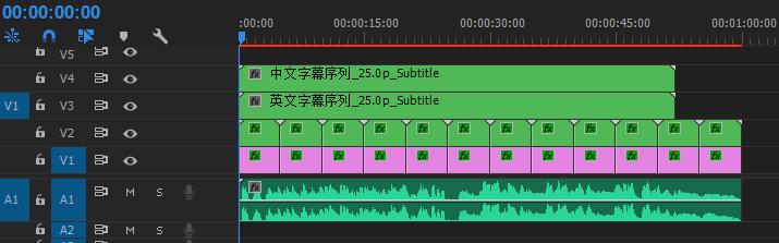 字幕块会出现在在时间轴中,时间轴横向代表时间,纵向代表轨道,这很好理解。那么字幕块在时间轴中的位置就代表一句话的开始时间,位于左侧的字幕块要比右侧的更早显示出来。字幕块的长度代表一句话的时长,这也很好理解。