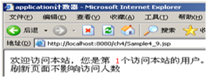 在Sample4_7.jsp中制作了使用session对象禁止用户通过刷新页面增加计数的计数器。本例中将计数值存储到application对象中。