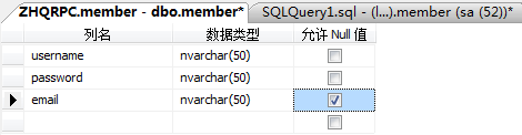 (1)使用SQLServer 2005建立数据库member,在该库中建立一张数据表member,数据表结构设计如图所示:
