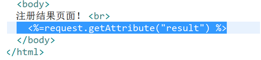 (4)设计视图Resultshow.jsp,用于显示注册及反馈信息。