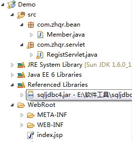 (8)将第5章案例2中下载解压后的sqlJDBC4.jar文件到Demo/WEB-INF/lib目录下。