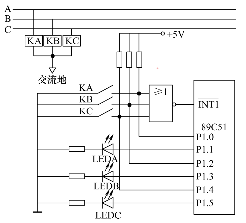 消防设备电源来自于电网220V工频交流电。常用交流电压和电流互感器来实现消防设备电源中单相或三相交流电源的实时监控和采集。交流电源电压和电流的检测原理,就是通过电压互感器和电流互感器将交流电源的高压高电流转换成单片机可以检测处理的低电压。
