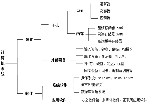 计算机系统由硬件(Hardware)和软件(SoftWare)两部分组成。