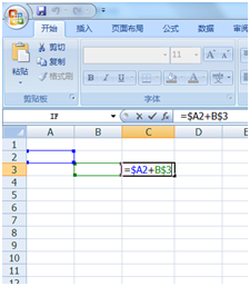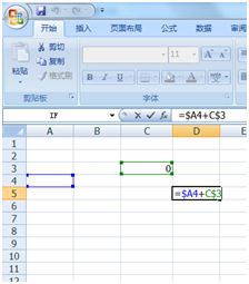 例如还是上面的那个实例,我们在“C3”单元格中输入的公式是“=$A2+B$3”,那么公式复制到“D5”单元格以后会变成“=$A4+C$3”。如图4-3-9和图4-3-10。
