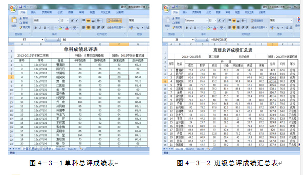 (1)打开“单科成绩总评表”,打开“计算机基础总评成绩表1”表格。