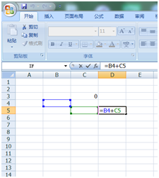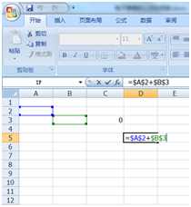 例如上面的那个实例,如果公式的地址是绝对引用,将“C3”单元格中的公式复制到了“D5”单元格,那么两个单元格中的公式还都会是“=$A$2+$B$3”。如图4-3-7和图4-3-8。