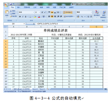 正是因为有了这个相对地址的引用,所以在单科成绩总评表中,我们才可以使用自动填充的功能快速的复制公式,完成所有总评成绩的计算。