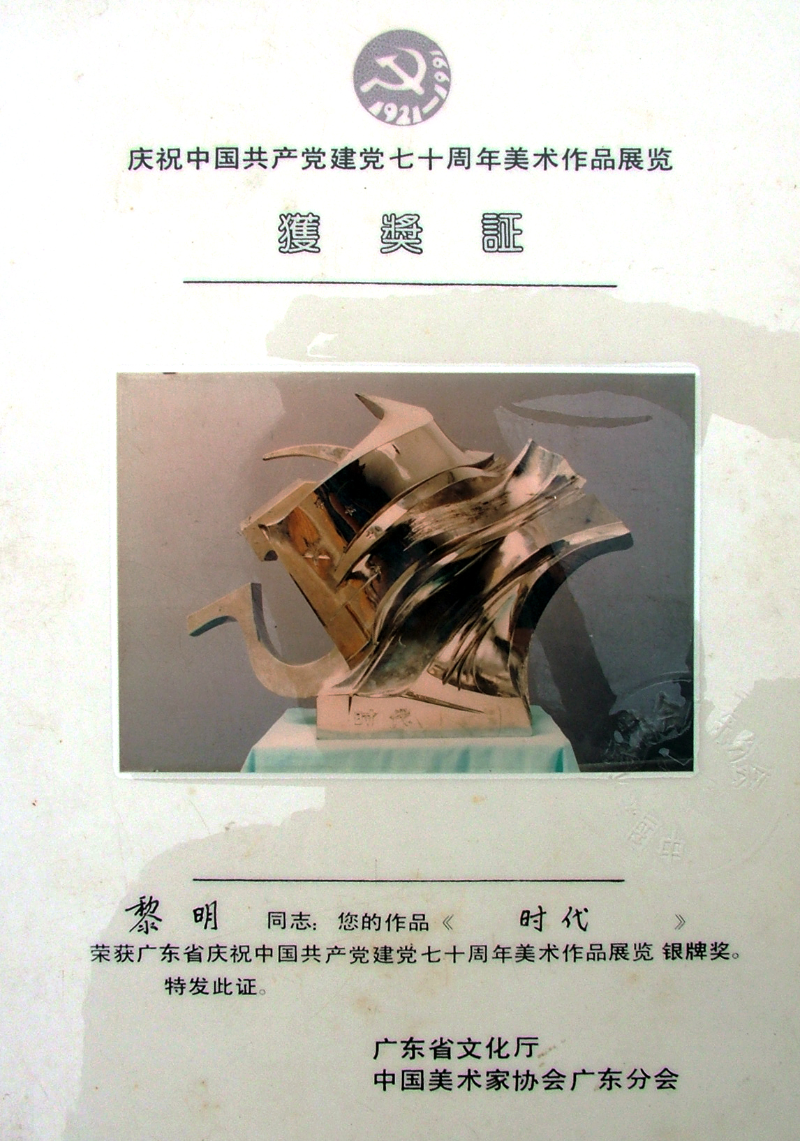 广东省建党70周年银奖。