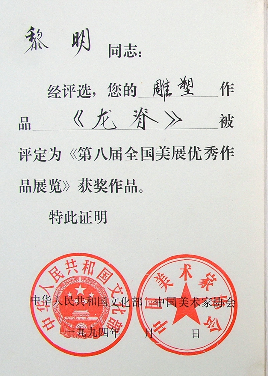 1994 《龙脊》第八届全国美展优秀作品展览获奖作品;