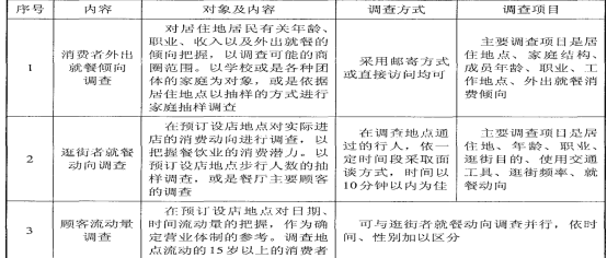 作为餐厅经营者,在选址前应做好市场调査, 并以调査报告的形式记录下来以随时了解市场行情选择一处好的地段经营。
