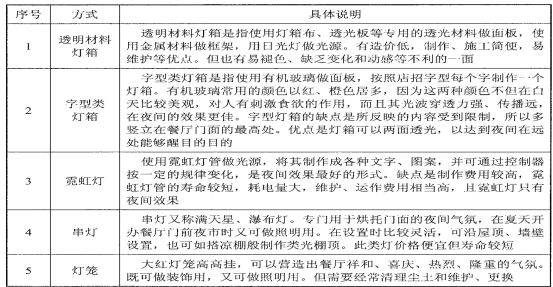 招牌的传统模式都是以汉字为主, 还可以根据需要适当增加民族文字、 汉语拼音、外文。文字内容除名号外,可适当増加宣传餐厅风味、特点的内容,但要言简意赅。招牌内容表现常用的字体尽量简沽、大气、艺术、形象。文字要尽量使用规范的简化汉字,在大城市尤为重要,已被列入市容监察管理的范围。若是名人用繁体字书法题写的字号,可将其作为餐饮店的标志使用,而招牌仍要用规范简化字作为正式文字。