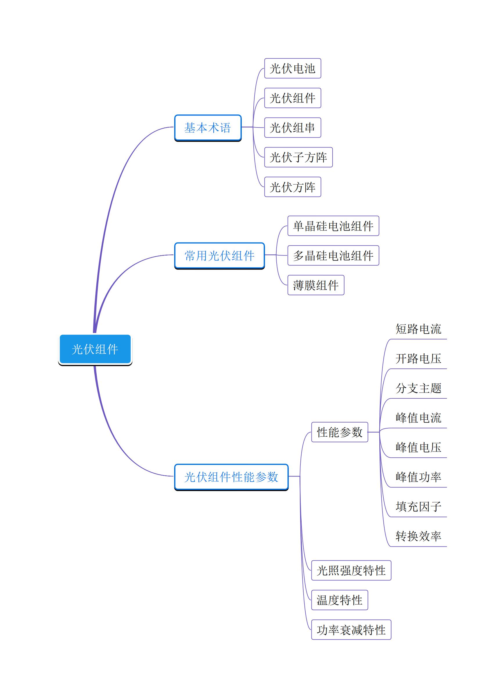 (1)理解光伏组件的相关术语:光伏电池、光伏组件、光伏组串、光伏子方阵、光伏方阵;