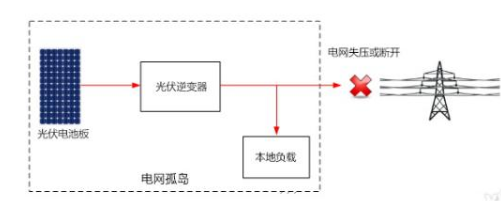 孤岛效应是指当电力公司的供电,因故障事故或停电维修而跳脱时,各个用户端的分布式发电系统未能即时检测出停电状态而将自身切离市电网路,而形成由分布式发电系统和周围的负载形成的一个电力公司无法掌握的自给供电孤岛。分布式发电系统是相对于集中式发电系统来说,分布式发电系统靠近负荷侧,比如光伏发电系统、风力发电系统等。