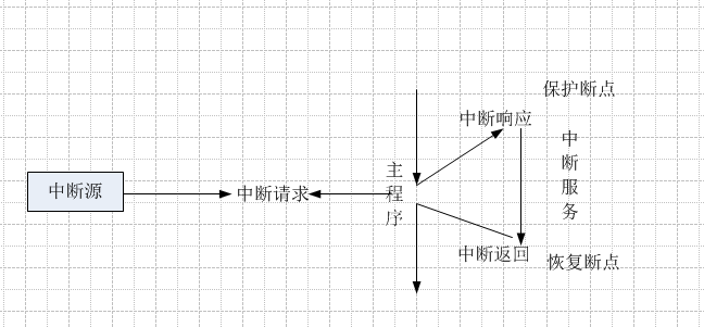 在计算机执行程序的过程中,当出现某种情况时,由服务对象向CPU发出请求当前程序中断的信号,要求CPU暂时停止当前程序的执行,而转去执行相应的处理程序,带处理程序执行完毕后,再返回执行原来被中断的程序,这样的过程称为中断过程,引起中断的原因或者触发中断请求的来源称为中断源。为实现中断而设置的各种硬件和软件称为中断系统。