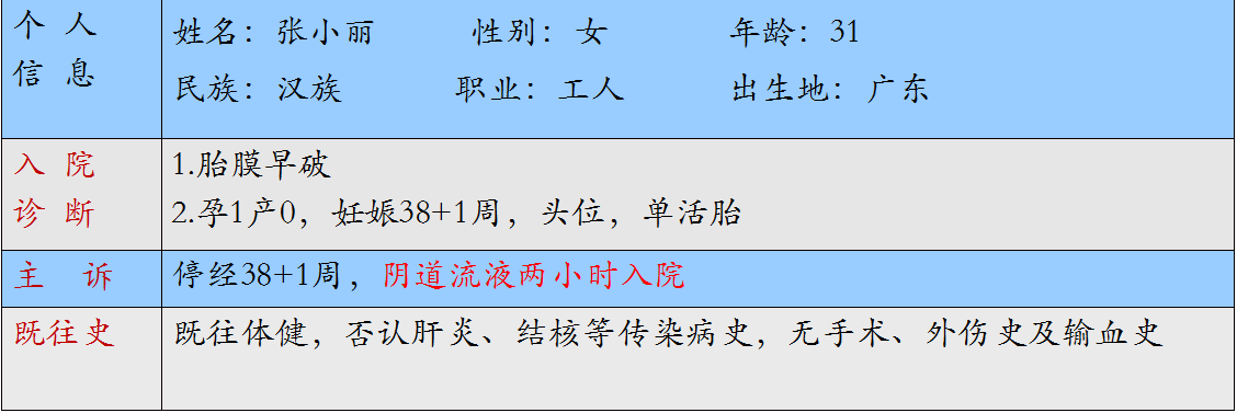 2.能力目标:能识别胎膜早破临床表现并给予患者正确的护理措施。