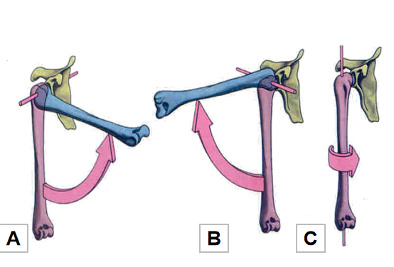 内收、外展运动:是关节沿纵轴进行的运动,运动时骨向正中矢面接近的为内收;相反,为外展。