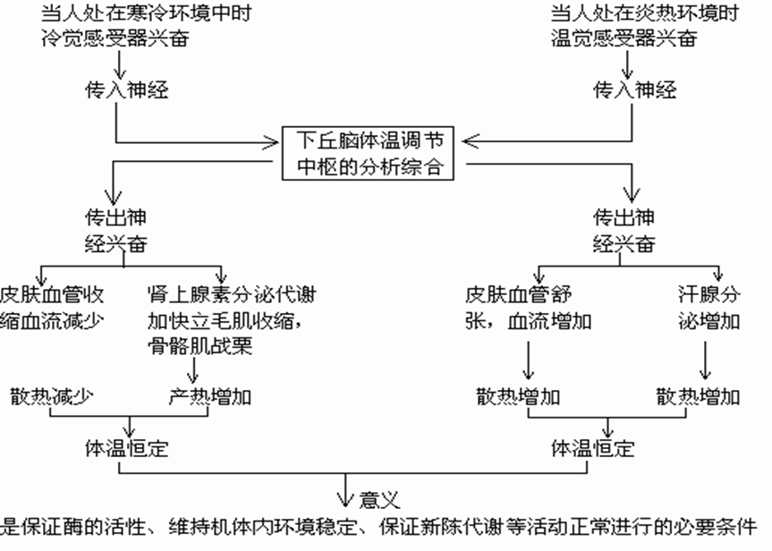 3.体温相对恒定的生理学意义:温度升高,生化反应加速。体内新陈代谢属酶促反应,酶的活性、反应速度亦受温度的影响。因此,体温过高或太低都将影响新陈代谢,严重时可危及生命。