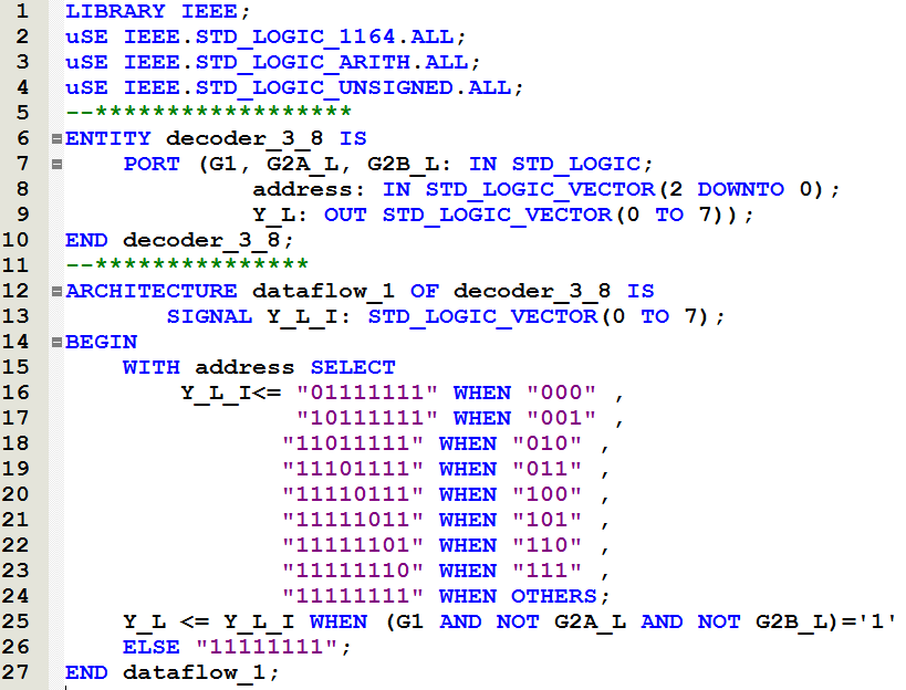 实验目的 | 1.学会编写VHDL源程序,并熟悉其基本格式。 2.验证由数据选择器和译码器组成的数据传输系统的逻辑功能。 |