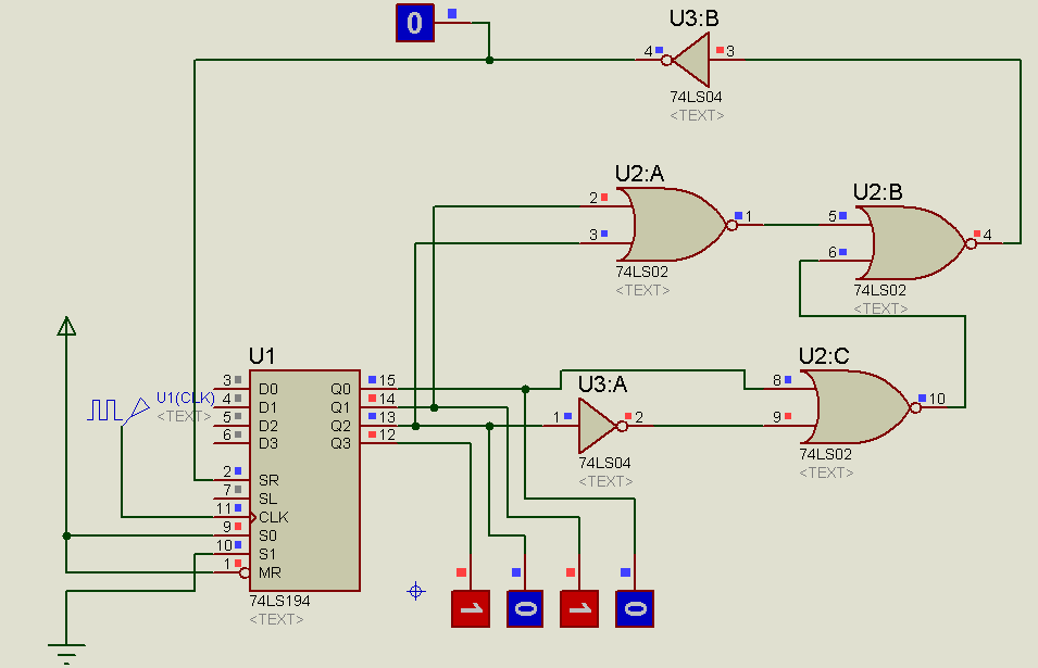 实验内容 | 用MSI移位寄存器74HC194(或74LS194)组成一个能产生100110序列的序列信号发生器,并测试其逻辑功能。 |