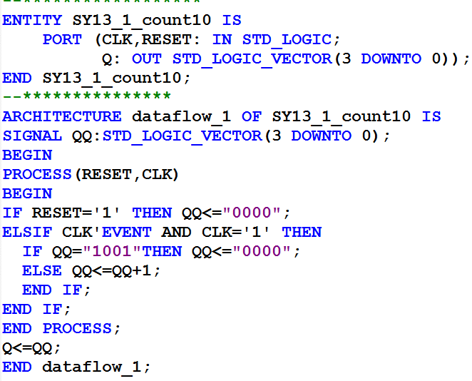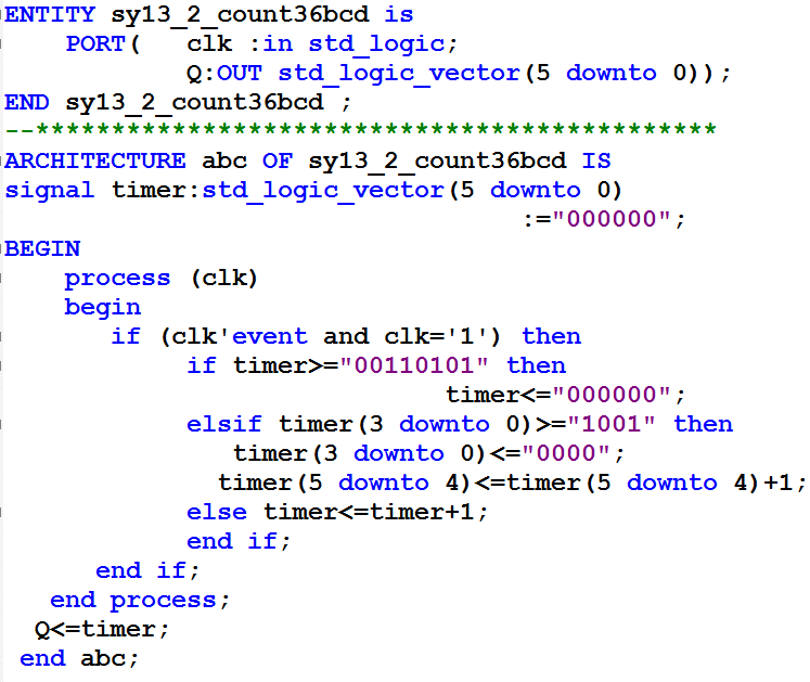 实验内容 | 1.用VHDL语言和PLD设计一个具有异步清零端的同步十进加1计数器,测试其输入、输出同步波形。(通信) 2.用VHDL语言和PLD设计一个8421BCD码三十六进加法计数器,并用数码管显示计数器个位计数,用两个发光二极管显示十位计数。 |