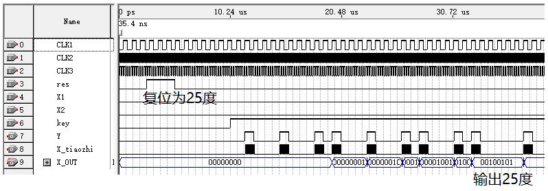 三、仿真波形图:为仿真方便,其中CLK1用400纳秒,CLK3用100纳秒,CLK2用10纳秒。