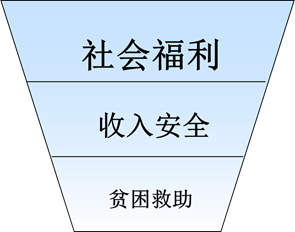 社会救助层次,我们解决的人是社会上很少数的人,提供的就是解决他的基本生活问题,所以从福利水平来看也是最低层的;
