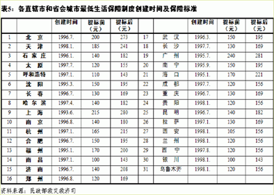 1995年上半年,上海、厦门、青岛、大连、福州、广州等6 大城市建立最低生活保障制度。