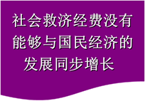 3、救济资金投入不足,社会慈善事业发展不足,救济水平偏低。