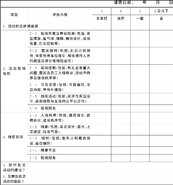 2)结合活动的实施内容和开展方式,列出重要的环节予以满意度调查;