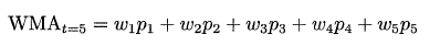 Wma5[i] = sum(w * Close[(i-4):(i+1)])