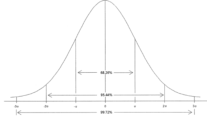 布林带通道的设定蕴含着统计学原理,假设股票价格走势呈现正态分布1,正态分布是关于均值呈对称分布的,如图所示,均值加减两倍标准差范围内的数据大概占据了整个数据的95.44%。布林带通道以价格的平均值加减两个标准差来设定上下通道,从正态分布的角度来看,布林带通道刻画了股票价格的主要变化范围,即大部分情况下股票价格应该在布林带通道内部运动,股价只有大约5%的概率会突破布林带通道的上轨道或者下轨道。因此在正常情况下,当价格线超出布林带通道上下线时,可以认为价格线有偏离,未来价格很有可能回落到布林带通道的内部。