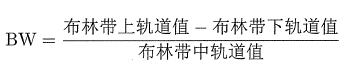 【3】带宽指标(Bandwidth, BW)是由布林带指标衍生出的另一种指标,其主要刻画出布林带通道的宽度情况,计算公式为: