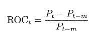 其中,ROC_t 表示股票 t 时期的 m 期动量值(价格变化率),P_t 表示股票 t 时期的价格,m 表示时间间隔,P_{t-m}表示股票在 t-m 期的价格。