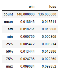performance=pd.DataFrame({"win":win.describe(),"loss":loss.describe()})