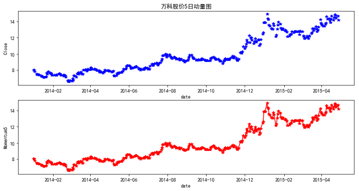 --------------------------------绘制收盘价和5日动量曲线图---------------------------